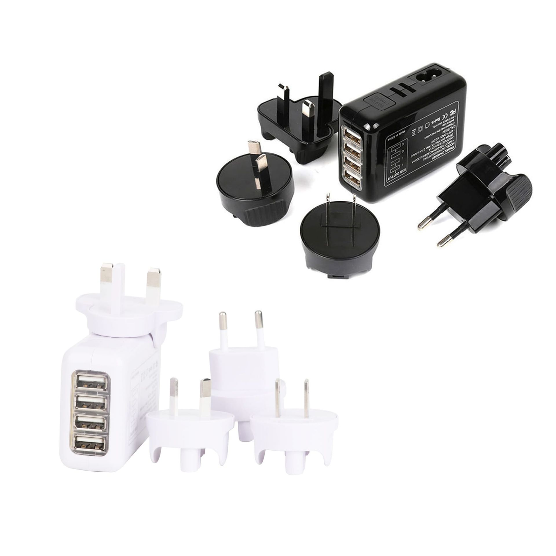This item comes with 4 Smart USB ports. Changeable adaptors for Australia (SAA), EU, UK, US; can be used in more than 100 countries world-wide. Smart ports offer over voltage, over current and short circuit protection. Suitable for smartphones, tablets, cameras and any other devices.