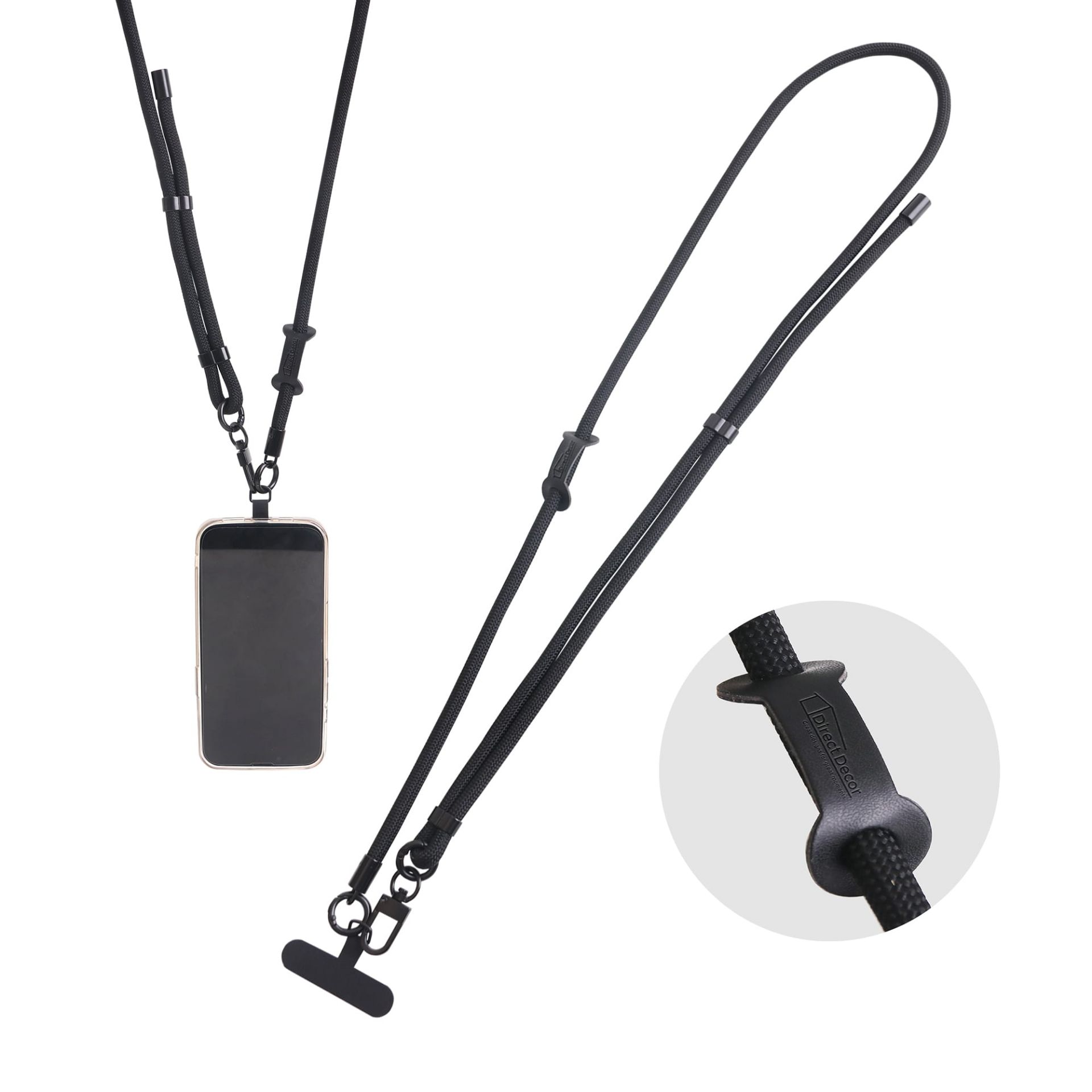 Get your branding seen with our new adjustable phone lanyard. Made from high quality polyester, can be adjusted to the desired length with the metal buckle. With debossing on the PU buckle to highlight your design. Not only can the phone lanyard be used for mobile phones, but also a separate lanyard can also be used for keys, card holders or cameras, which can prevent items from being lost and free your hands.