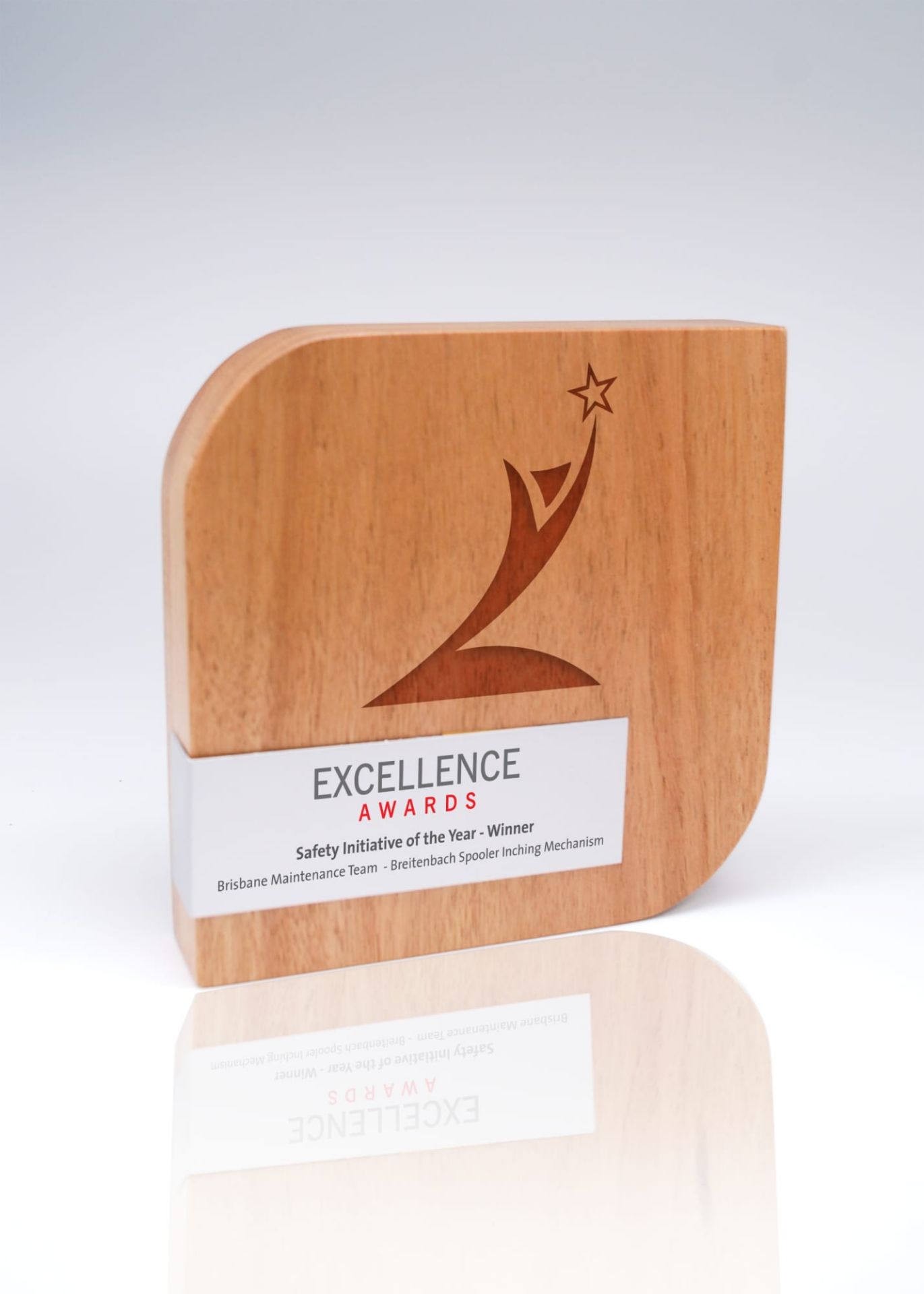 This contempotary shape timber trophy with Metal Wrap is Australian made from selected Australian plantation timbers to deliver you a sustainable and local made solution to your awards whilst supporting Australian Small Business. Using simple shapes wrapped in smooth alloy with full colour print. • The price displayed includes the print on the full metal surface. • Optional additional print or laser engrave direct to the timber
