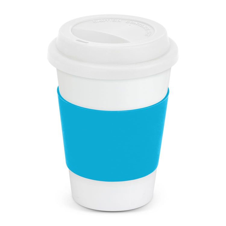 Robust 350ml ceramic coffee cup with a large heat-resistant silicone band and a secure push on silicone lid. The band and lid can be mixed and matched in any colour combination from the standard colours at no extra cost. Up to five different colour combinations are included in the price and more are available for an additional charge. Aztec is presented in a natural gift box. This product is not dishwasher safe and handwashing is recommended. Features: * Robust 350ml ceramic coffee cup * Optional branded gift box sleeve available at an additional cost * Presentation: Natural gift box