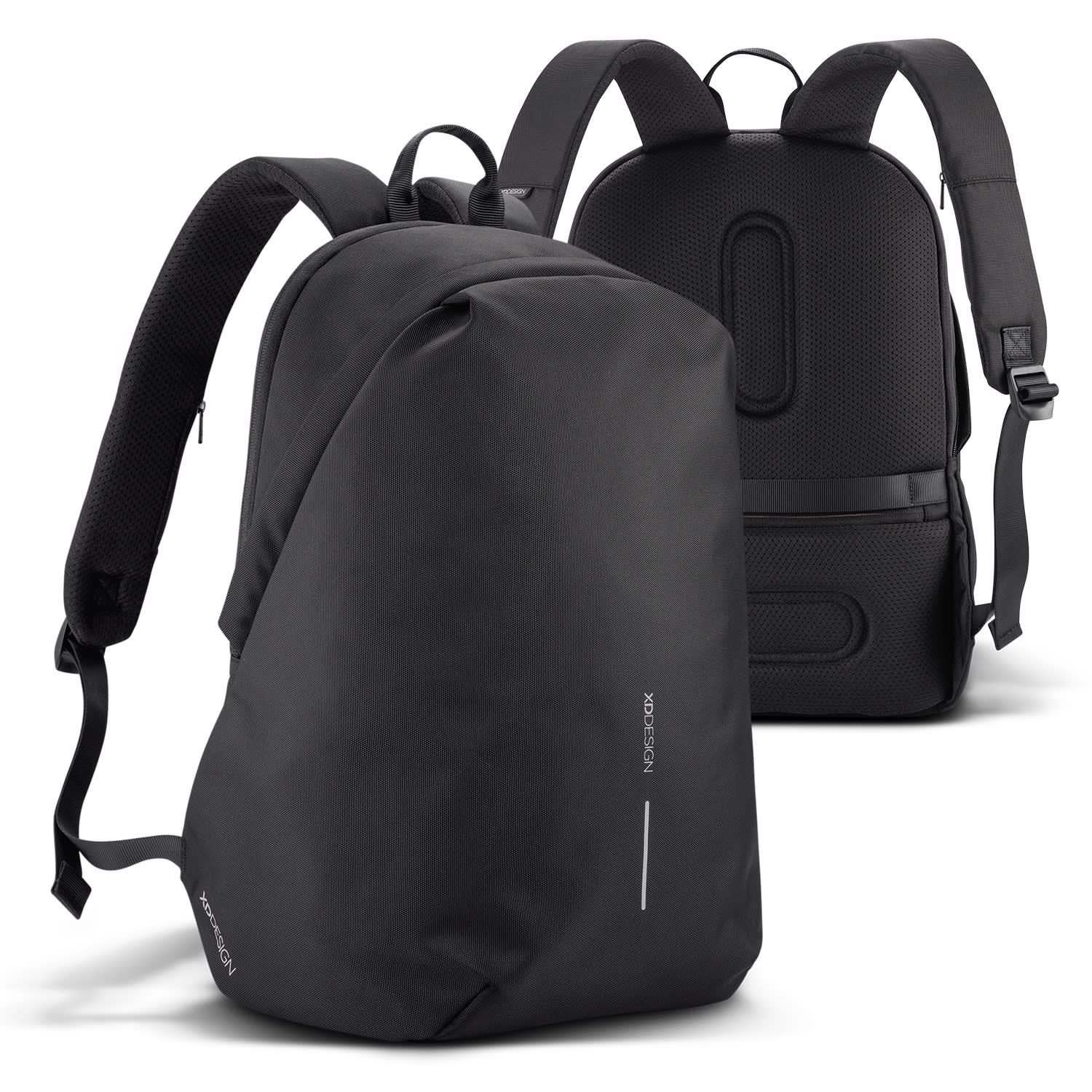 An iconic backpack developed by the innovative team at XD Design, the Bobby Soft Backpack is perfectly suited for school, work, or day trip. The anti-theft design keeps belongings secure using hidden pockets with RFID protection and hidden zippers. The main compartment can only be accessed from the back of the backpack and includes a padded sleeve to fit a 15.6 inch laptop as well as various sleeves and mesh pockets for organised storage solutions. Bobby is full of features to make life easier on the go, including an integrated USB charging port, a keychain clip, reflective safety strips and uses RPET materials. Each Bobby Soft Backpack saves 22L of water and reuses 37 plastic bottles. The Bobby Soft Backpack has an AWARE tracer, using a physical tracer and blockchain technology to ensure the use of genuine recycled fabric materials and water reduction is guaranteed.