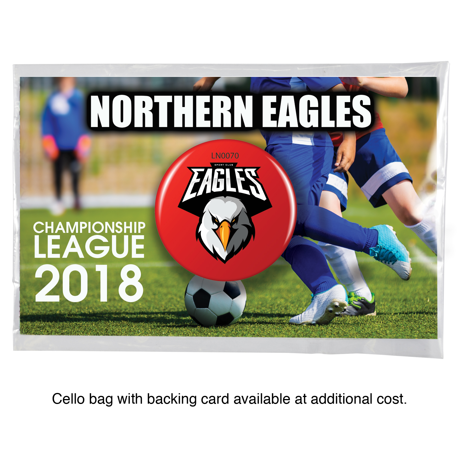 Steel button badge with safety pin and plastic base. Printed in full colour. 300gsm 2 sided digital printed backing card available at extra cost.