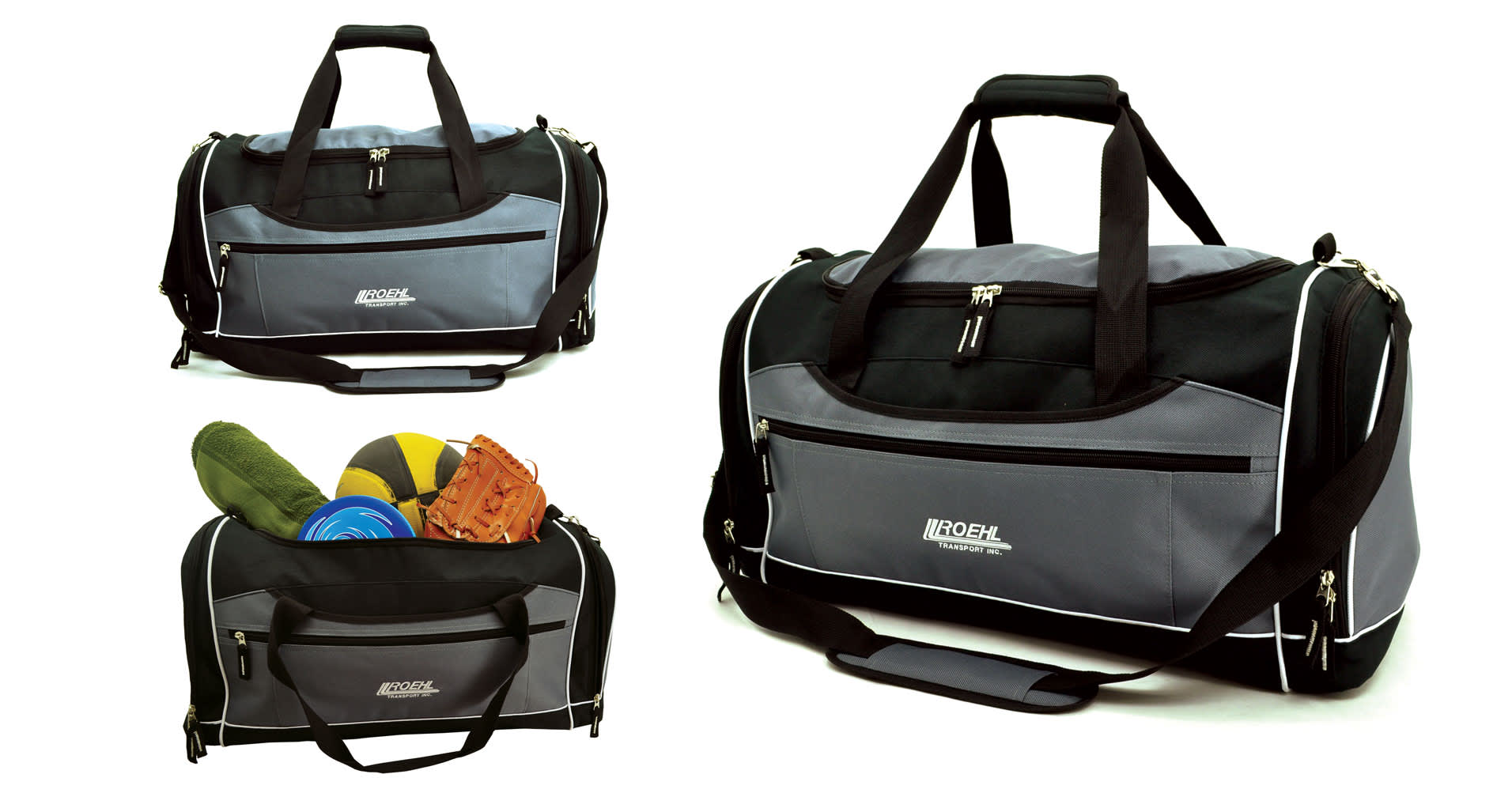 Large centre compartment with U-shaped opening, Large zippered insulation pockets at both sides, One zippered and one open pocket at the front, Removable and adjustable contrast shoulder strap and carry handle, Studded base for durability