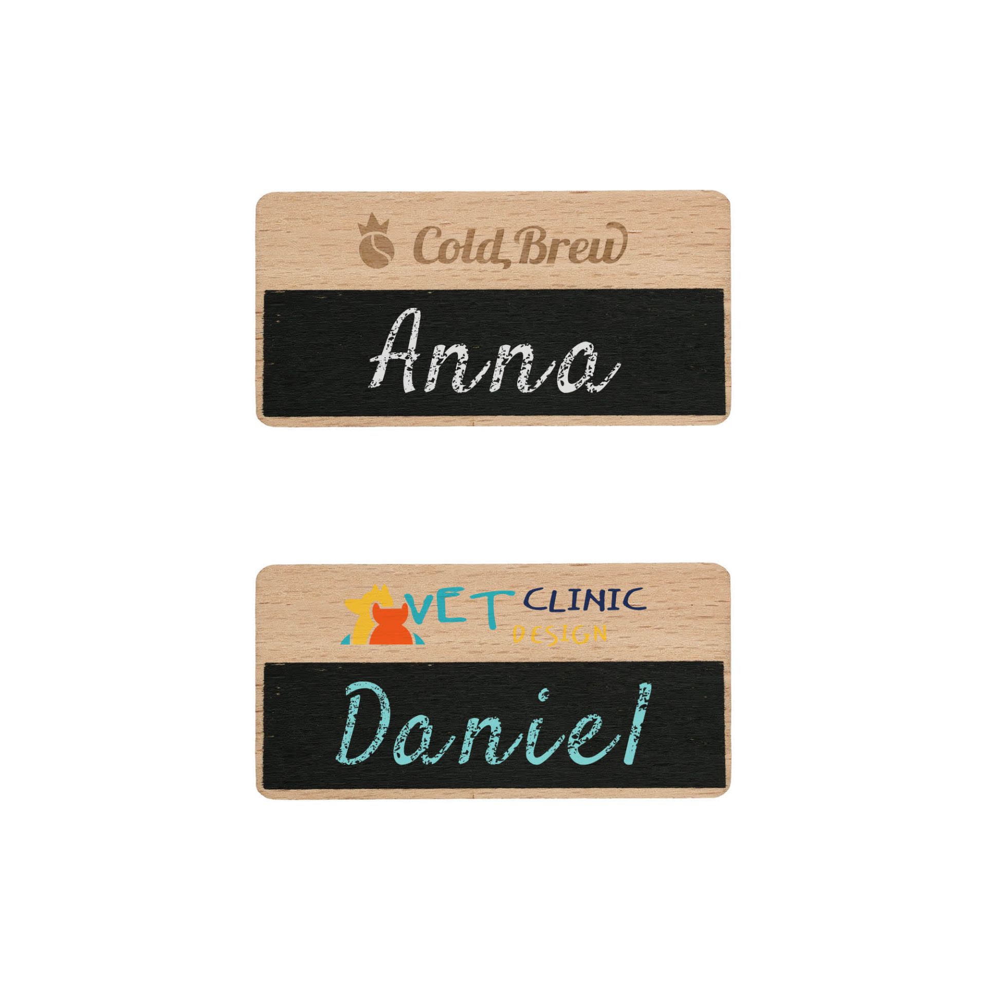 Create your own unique erasable identifier with our Erasable Wooden Chalkboard Name Badge! Made of wood material, which is natural, durable and has a chalkboard surface. The badge features the chalkboard surface for easy name rewriting to achieve reusable function. With laser engraving and digital UV print to highlight your design. Suitable for cafes, schools, craft shops, farmers' markets and kids' events. Customised logos or patterns on the badge can boost brand promotion. This erasable wooden badge gives staff, teachers and event hosts high-quality, natural designs, adding warmth and practicality to daily use.