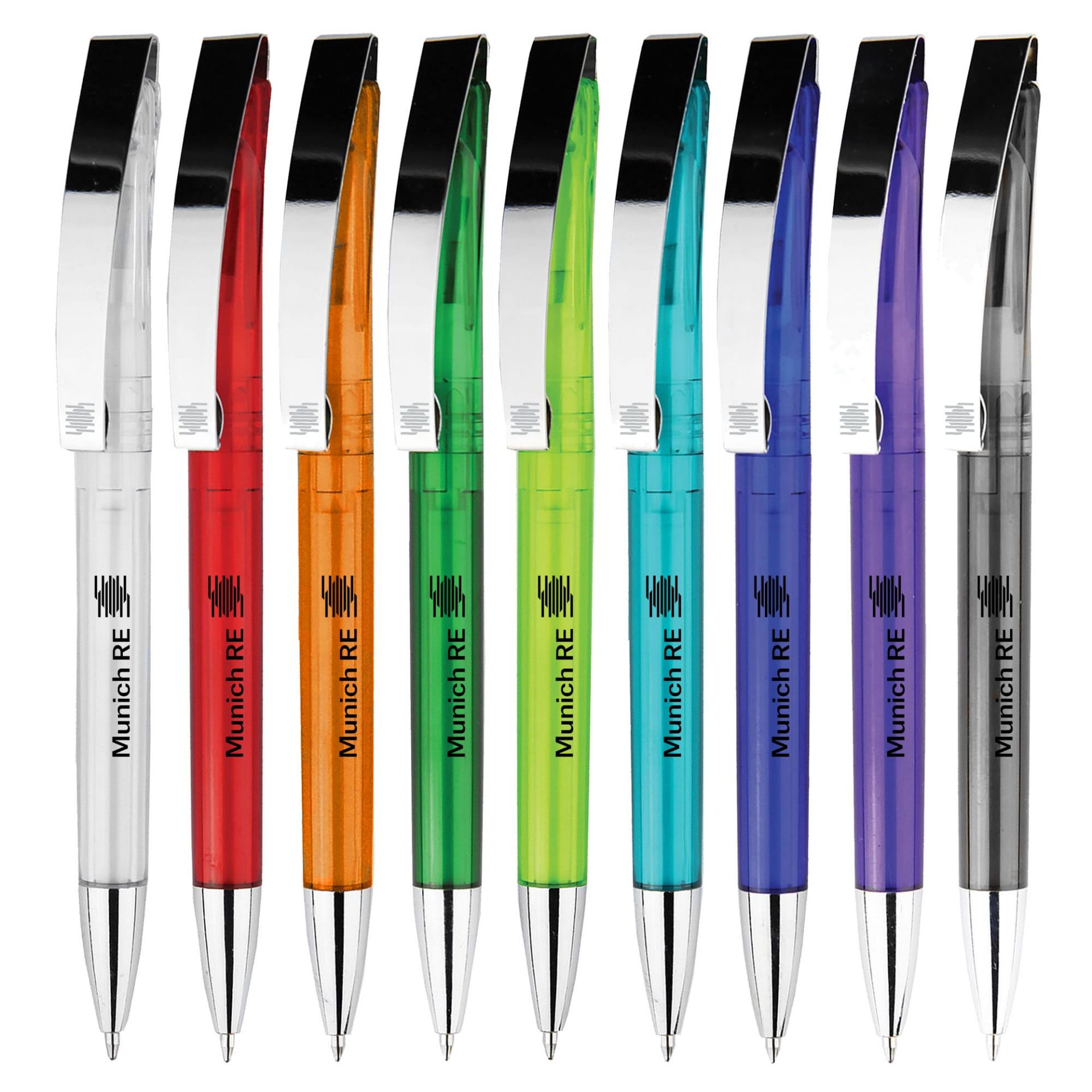Twist action high quality ABS transparent plastic pen shiny chrome metal clip with bright transparent barrel the stylish design will surely brighten your logo a large printing area on the clip give you a great option of laser engraving on a plastic pen. It has high quality German manufactured black ink refill 1800 meters writing distance tungsten carbide ball provides you with quality writing. Comes standard with black ink but blue ink is available on request. Exclusive to Dex Collection in Australia and New Zealand.