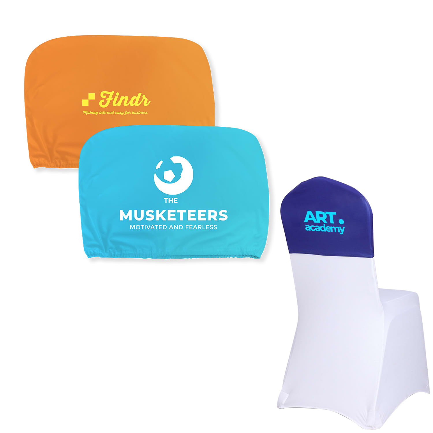 Our chair cover is made of Polyester, which is good elasticity and anti-wrinkle. It's ideally to barding your events such as exhibitions, conferences, dining, and most other social gatherings. Our high-quality Chair band comes in a standard size of 15 x 35cm and can be tailor-made to a wide range of sizes to fit your chairs. With 180GSM graphic weight and full digital printing, our Chair cover will easily transfer your venue into any theme you like.
