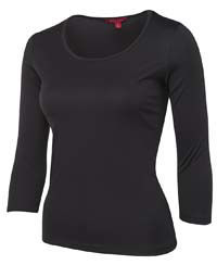 This easy-to-wear slim fit basic features a flattering wide scoop neck and three-quarter sleeves.