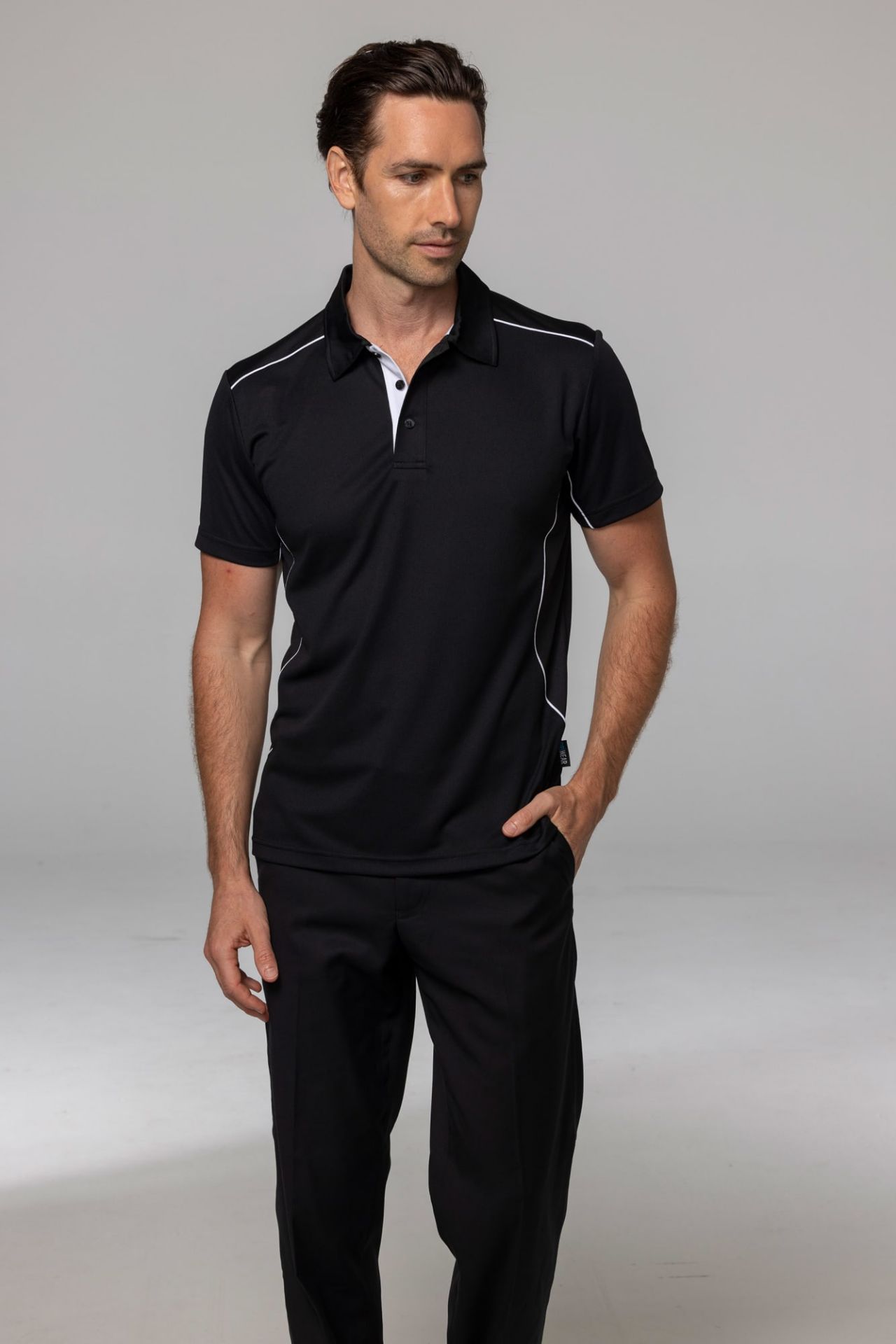 FeaturesSet in sleeve polo with self fabric collar Dri-wear antibacterial finish Front & back yoke and side panel in ice hole mesh with contrast piping Under front sleeve panel with contrast piping Contrast self fabric under front placket Loose pocket provided (mens only)