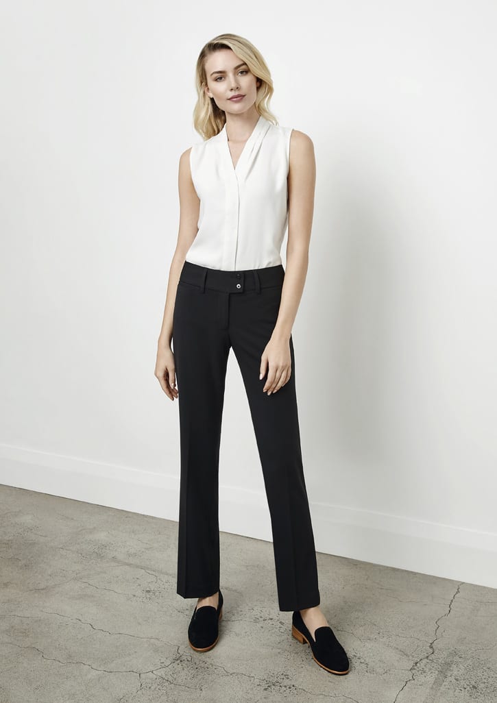 Features: you find pants fit at the waist but are too loose at the hip you have a slimmer thigh you have a petite or slender build Fabric: 4-way Stretch Comfort 62% Polyester, 34% Viscose, 4% Elastane Sizes: 4 - 16 Extras: {"name"=>"BIZ TECH™ TECHNOLOGY FEATURES", "features"=>["Mid-rise with a flattering wider waistband", "Low profile front and back pockets", "Classic straight leg shape", "Finished inseam length: 82cm"]}