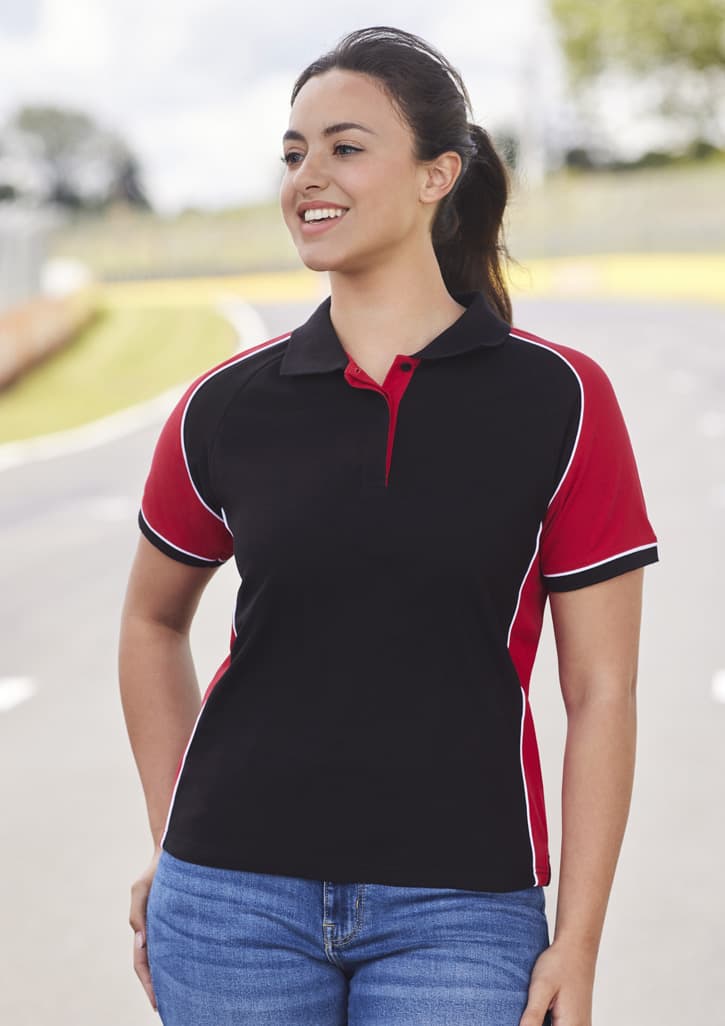 Features: Contrast panel with piping Knitted collar and cuff Side splits with twill tape Fabric: 65% Polyester, 35% Cotton Pique Knit - low pill yarn 210 GSM UPF rating - Excellent Sizes: 8 - 24