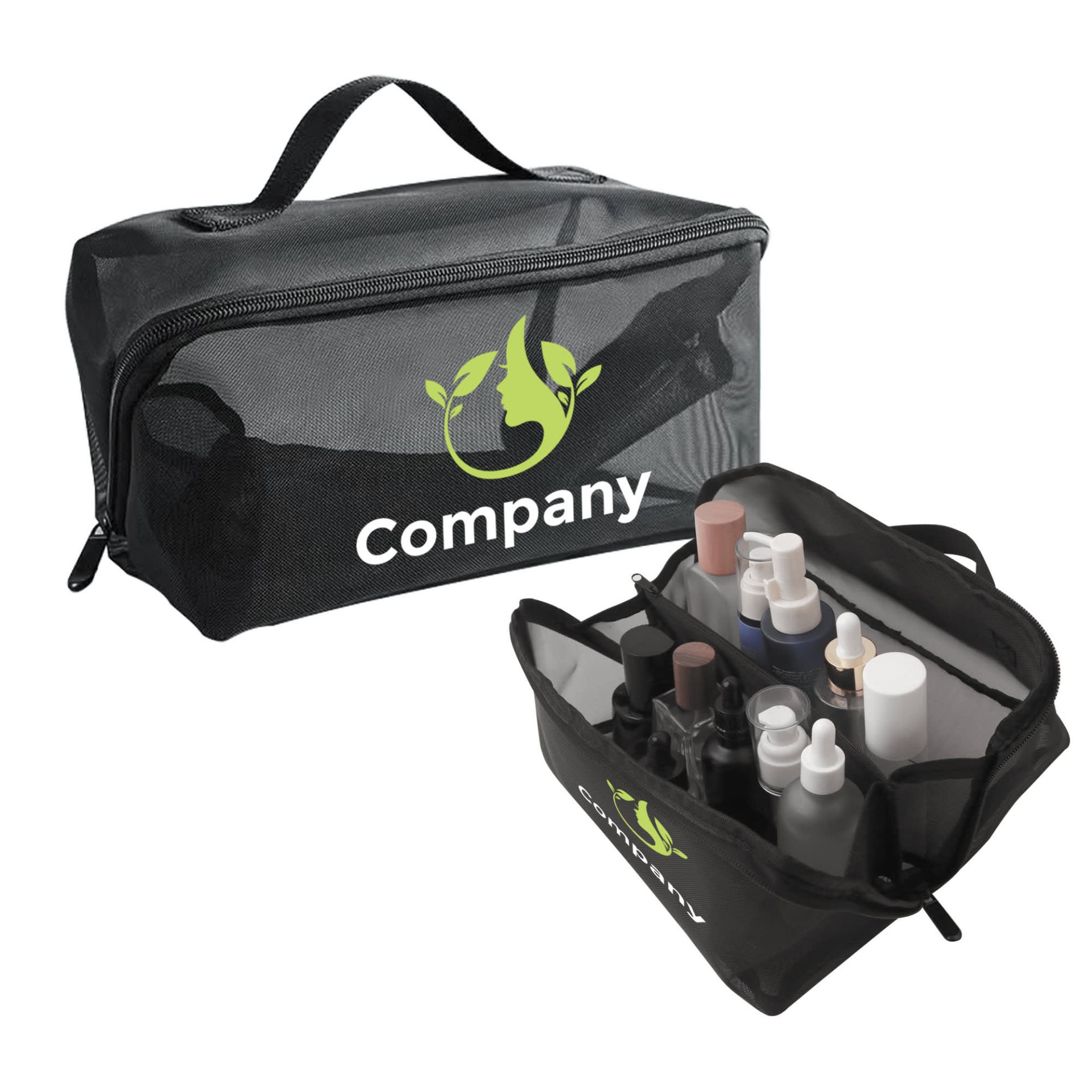 Get your branding noticed with our Large Capacity Nylon Mesh Cosmetic Bag. Made from durable, breathable nylon mesh, this bag ensures effortless organization while keeping your essentials visible and accessible. Its multiple compartments fit cosmetics, toiletries, jewelry, and small accessories neatly. Lays flat when opened, making it easy to see and reach all your items. With screen print to highlight your design. Perfect for beauty brands, salons, or corporate events.