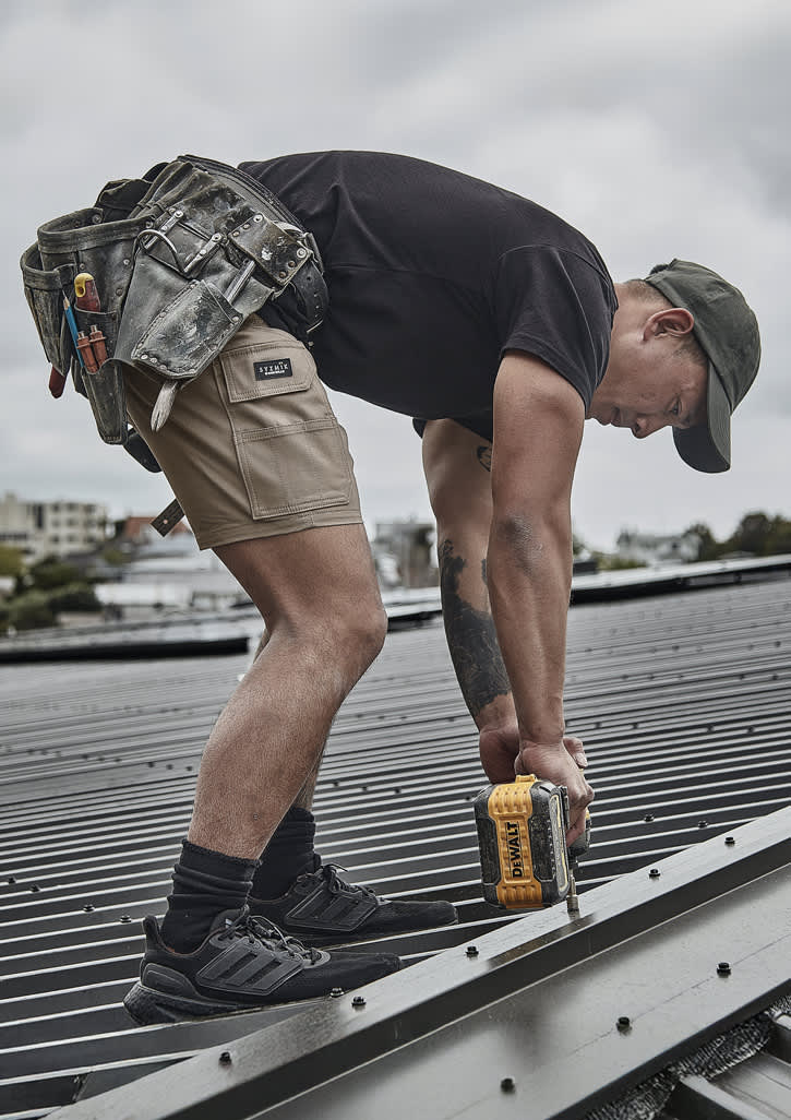 Features: Stretch cotton fabric provides increased freedom of movement and comfort Internal stretch waist band for added comfort New slim fit with a length that sits above the knee Triple stitched seams for increased durability at key stress points Large angled cargo pocket on the leg provides comfortable storage Mobile phone pocket with flap closure Ruler pocket and pen partition 2 Back hip pockets 2 Side waist pockets with wide openings Fabric: 98% Cotton, 2% Elastane, 280 GSM Sizes: 72 - 132