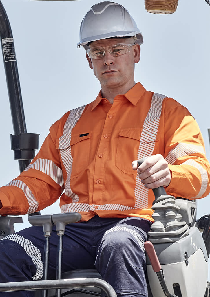 Features: NSW Rail compliant X back taping configuration Segmented reflective tape to improve comfort, movement, and breathability 150 GSM Midweight cotton twill to keep you cool while still being tough enough for any job Underarm and upper back mesh vent inserts Bio Motion tape configuration to improve recognition of human shape at distance 2 Chest pockets with button closures and pen partition Fabric: 100% Cotton Twill, 150 GSM Sizes: XXS - 5XL, 7XL