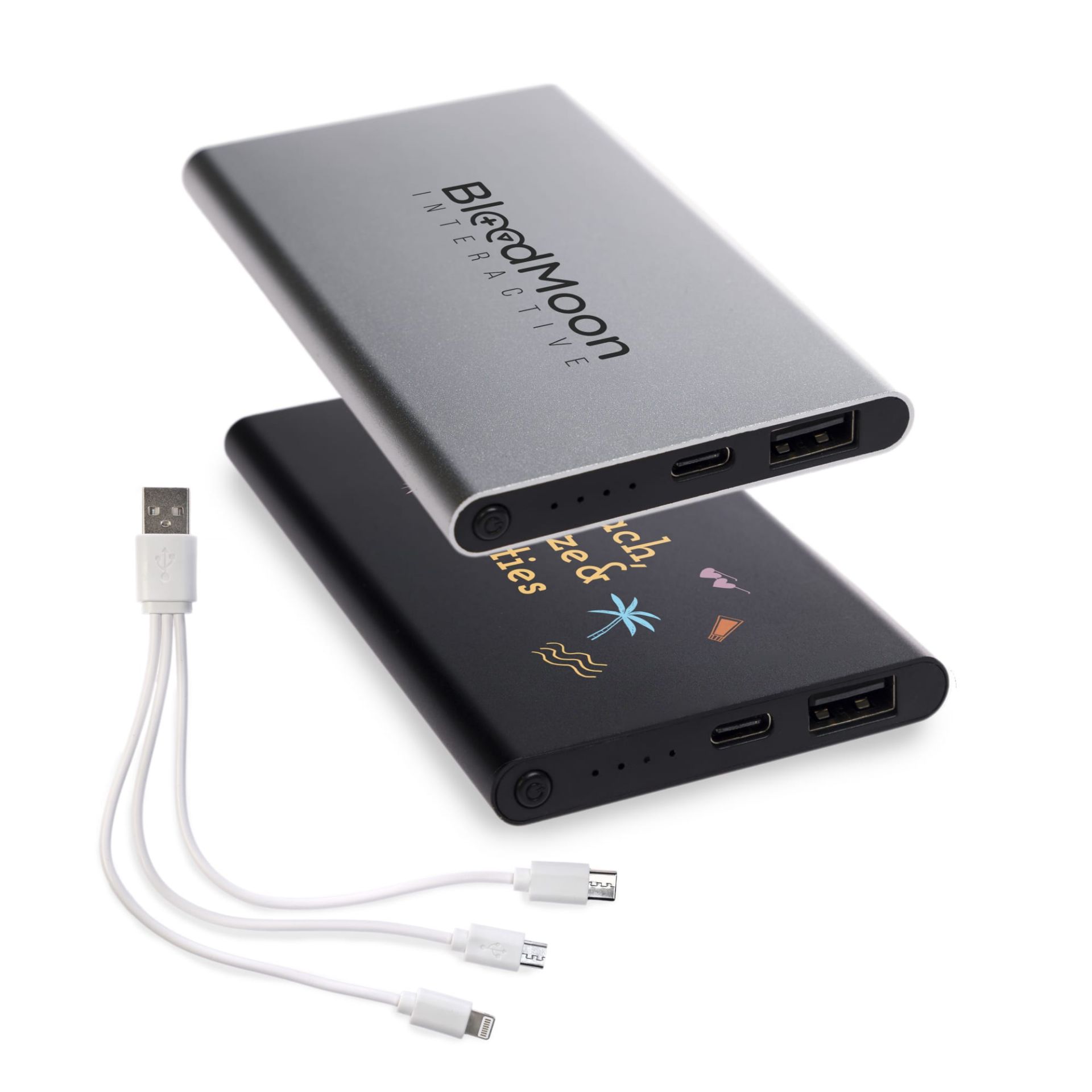 Stay powered up with the sleek Octavius Power Bank. Featuring a durable aluminium shell and 4000mAh Li-Po battery, it’s equipped with a USB-A inlet and Type C outlet, delivering 5V/2A output to keep devices charged on the go. LED indicators display battery capacity, and an on/off button provides control. Includes a 50cm 3-in-1 charging cable (Micro USB, 8-pin, Type C) for ultimate versatility. Available in Black or Silver, presented in a kraft tuck box.
