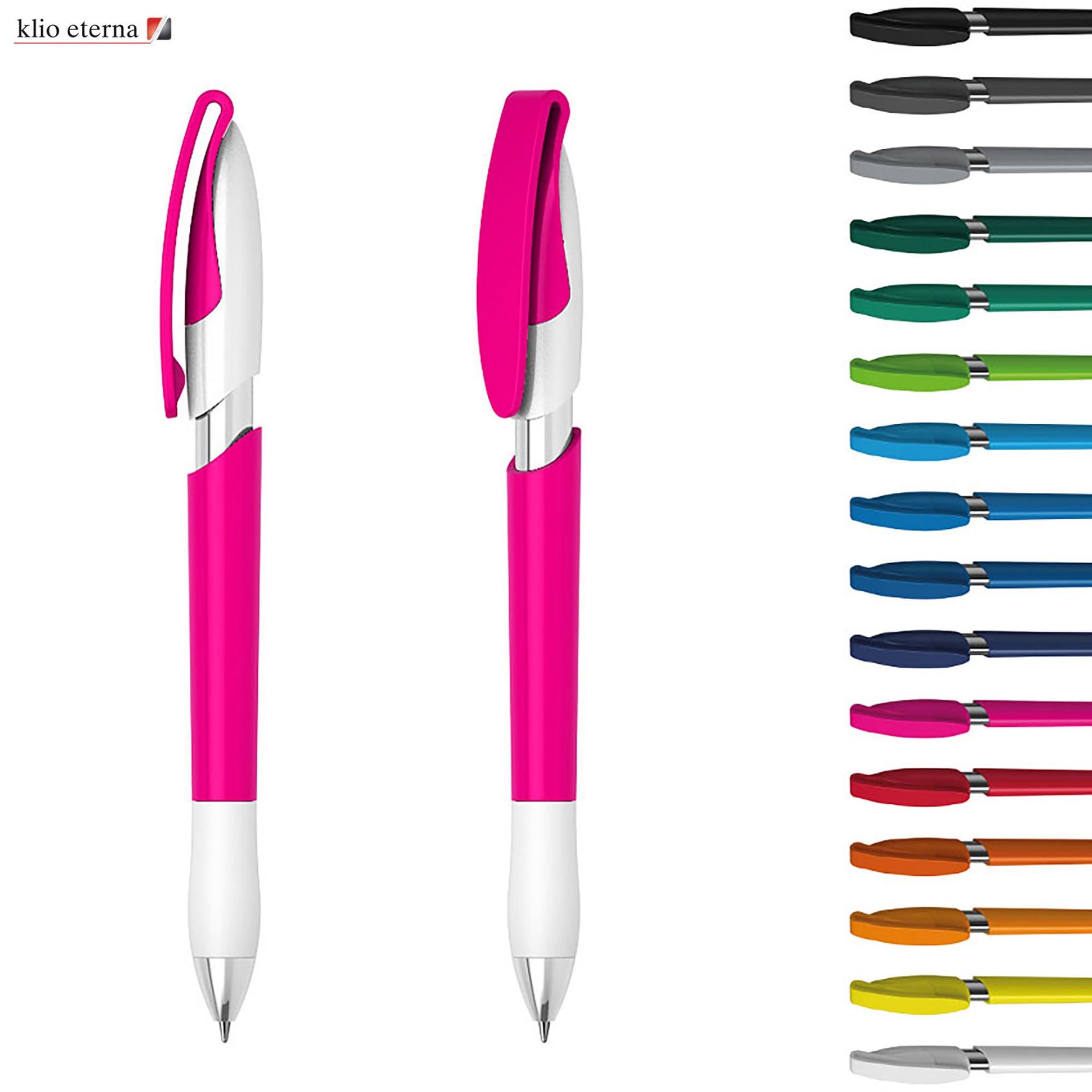 Klio - A Top European Brand, Est. 1900, sold world wide.Click action, solid high gloss plastic barrel with a thermoplastic grip which provides you with a comfortable writing experience, broad printing area clip, shiny brass nickel plated tip and metalized shiny silver sleeve, high quality silktech Parker-Type German manufactured black ink refill(Quality acc. to ISO 12757-2/Shelf life 3 years), 5000 meters writing distance(5 times longer than China made pens), tungsten carbide ball provides you with quality writing. Germany Design and Make. Exclusive to Dex Collection in Australia and New Zealand. 500 units minimum per colour. Customised colours are available from 5,000+