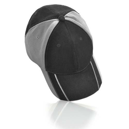 Structured 6 panel with pre-curved peak.Mesh knit Panel on both sides.Embroidered stripe and mesh panel peak.Suitable for: School and Sporting Events