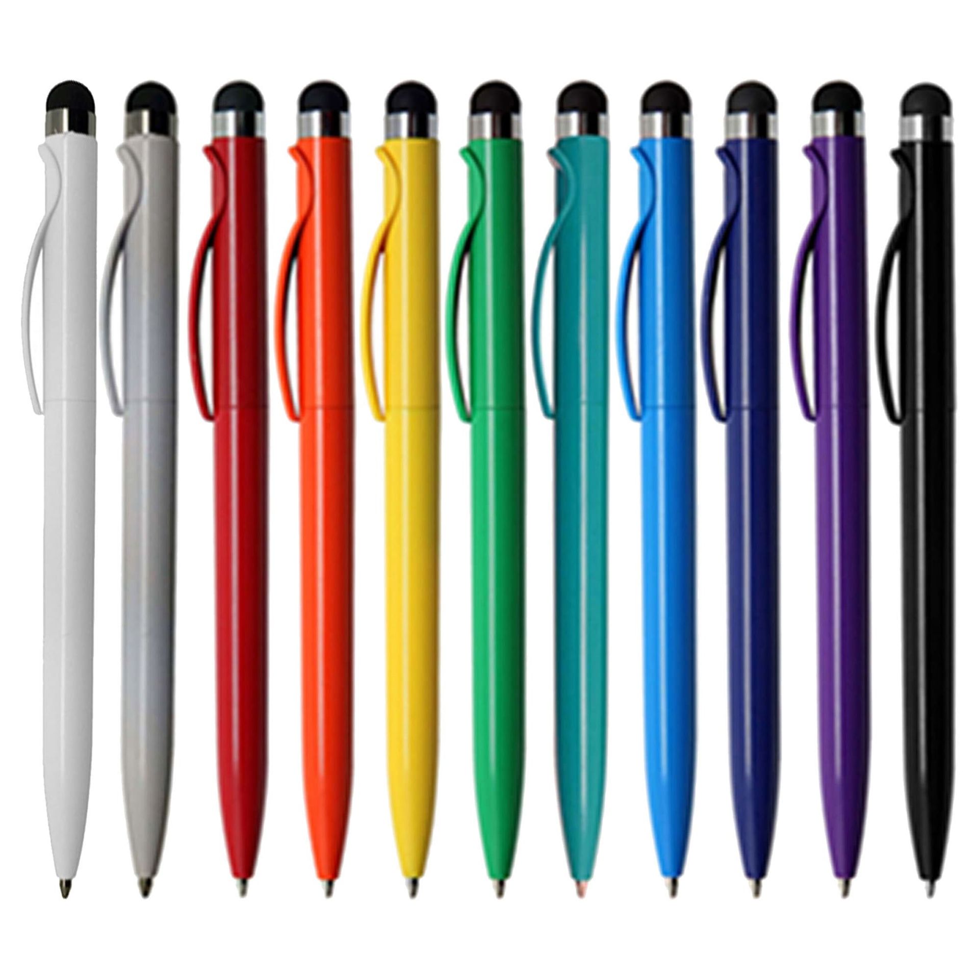 Twist action plastic stylus pen a very popular stylus pen in USA market. Solid plastic barrel with an arc-shaped clip it has a high quality German manufactured black ink refill 1200 meters writing distance tungsten carbide ball provides you with quality writing.