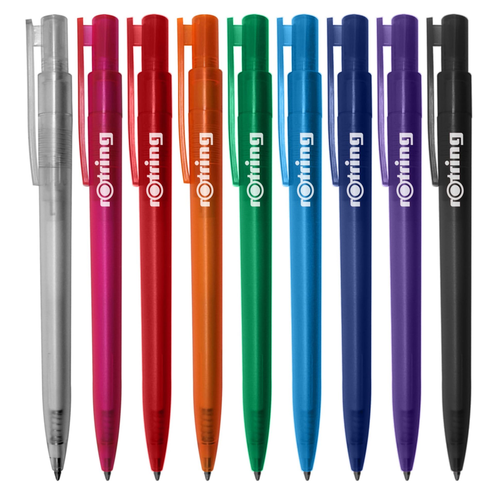 Click action European design plastic pen transparent coloured barrel and trim large printing area on clip. It has high quality German manufactured black ink refill 1800 meters writing distance tungsten carbide ball provides you with quality writing.