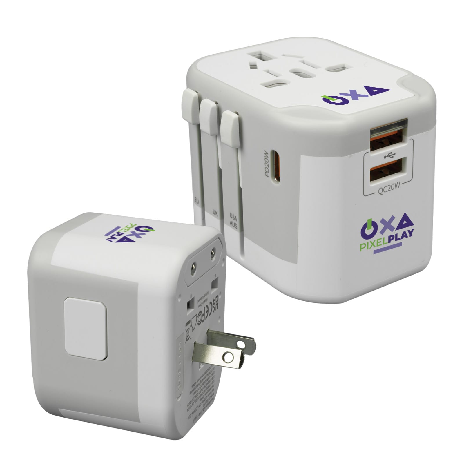 Stay powered wherever you go with the International Travel Adaptor. This compact adaptor features two 20W PD Type A outlets and one 20W PD Type C outlet, offering fast and efficient charging for your devices. It supports a maximum power of 1000W at 100V~ and 2400W at 240V~, ensuring compatibility with various power systems. Designed to be compatible in China, USA, UK, and Europe, this adaptor is your ideal travel companion. Neatly packaged in a kraft tuck box, it’s ready for your next adventure.