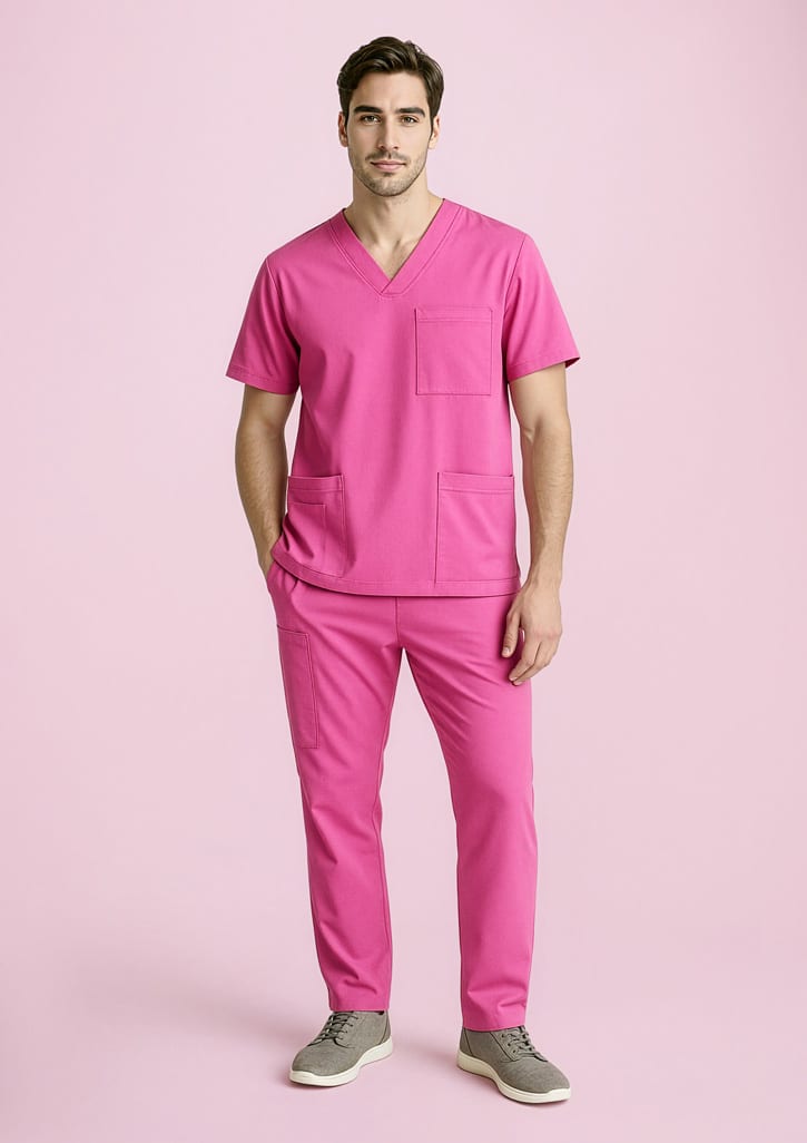 Features: PINK scrubs are made from our most popular fabric AVERY. Soft, durable and more comfortable than your favourite pair of pyjamas. Designed with attention to detail; functional, responsive, easy-care and durable. Style features: cargo style patch pocket on right side leg, side seam pockets, back patch pocket, 5cm hem allowance, elasticated waist with internal draw string. Style is designed to be a unisex fit, we recommend you size down for a more fitted look. With each unit sold, Biz Care will donate $5 to National Breast Cancer Foundation. Fabric: 96% Polyester 4% Elastane. Sizes: XXS-6XL. Cares: Can be washed at 60°C. Do not bleach, soak or tumble dry. Line dry in shade