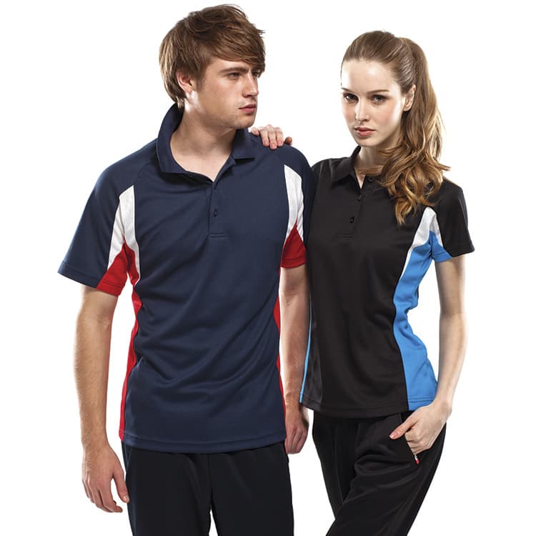 Pique Knit - 65% Polyester / 35% Cotton, Polymesh white panel on both sides, Contrast panel design under arm, Ribbed style collar, 210 gsm