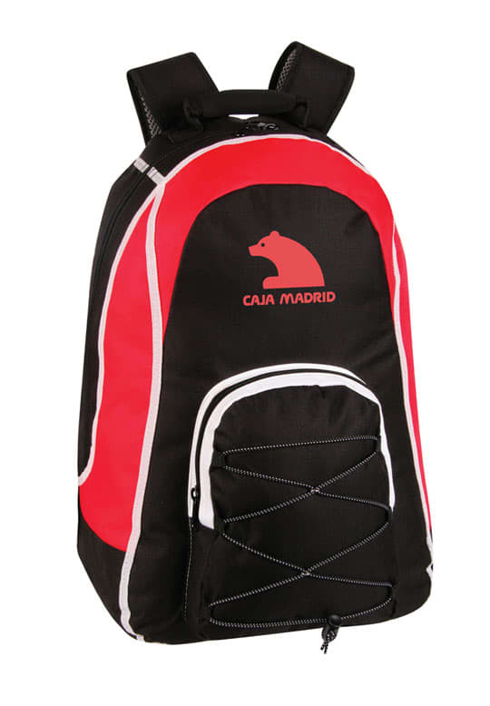 Main compartment with zipper closure, Large front bungee pocket with zipper closure, Padded back with adjustable backpack strap and carry handle