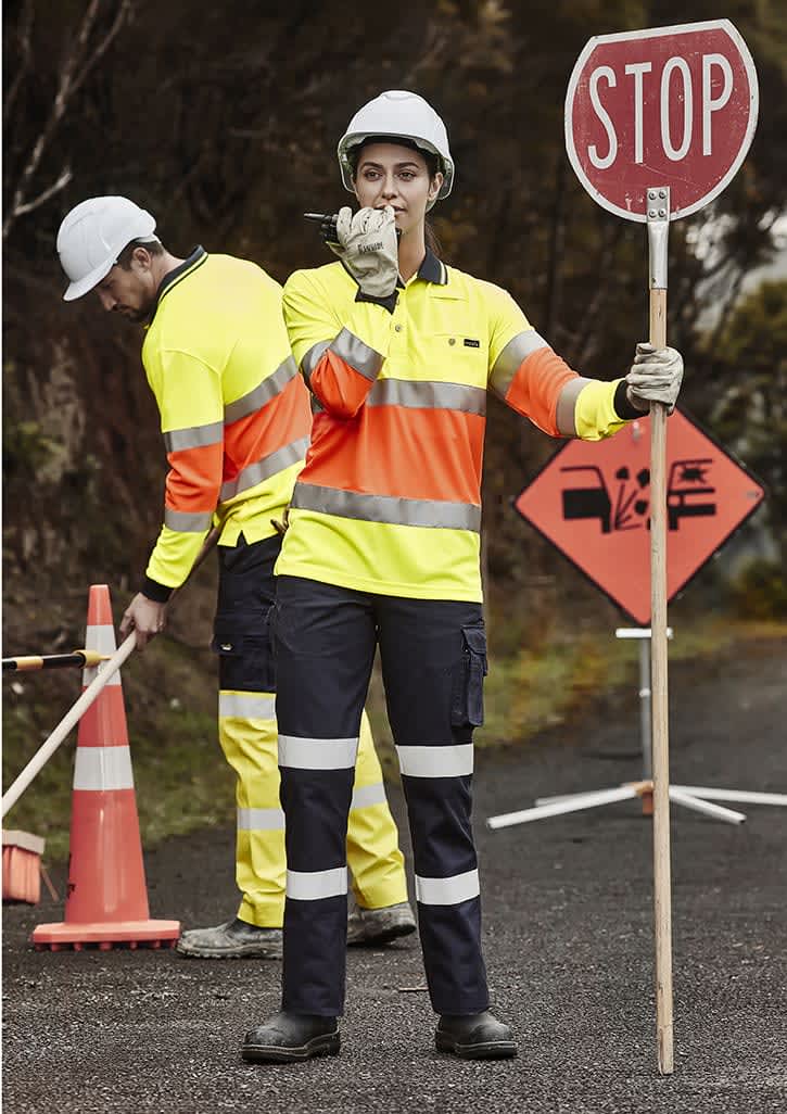 Features: Bio Motion tape configuration to improve recognition of human shape at distance Large cargo pocket with unique side zip pocket built into side bellow Side loop holder for traffic control wand Tailored feminine fit Mobile phone pocket Two side hip pockets Two back hip pockets Two pen partitions Fabric: 100% Cotton Drill - 280 gsm Sizes: 8 - 24