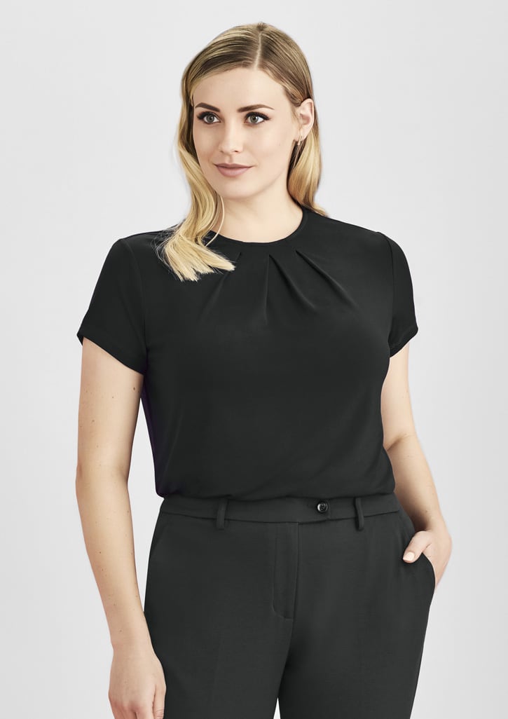 Features: Soft silhouettes in a luxe Jersey Knit fabric, with stretch for comfort and easy-care properties. This short-sleeved style has a classic crew neckline with pleat details, it’s designed to be a semi-fitted top. Wear yours tucked in or out. Fabric: 95% Polyester 5% Elastane Jersey knit structure provides stretch and comfort, combined with durable and easy-care properties, making this fabric a wardrobe essential. Machine washable with little to no pressing required. Sizes: 4 - 26 (AUS/NZ)