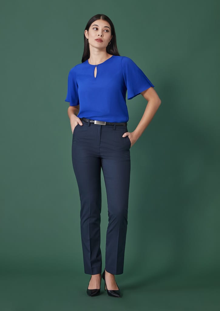 Features: 6 Belt loops Sits mid waist 2 Deep side pockets, mock back welt 5cm Hem allowance Hidden side elastic waist band to provide an extra 1/2 size when stretched out Slight tapering of pant from knee down Fabric: Renew Suiting: 77% Recycled Polyester, 20% Viscose, 3% Elastane; A lightweight fabric that's engineered to be an easy-care, machine wash-and-wear fabric with minimal creasing. Made for ease and versatility for when you are on the go. A conscious product choice, with 77% made from post-consumer recycled polyester. Sizes: 4 - 30